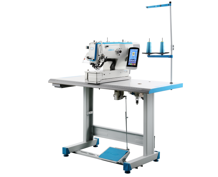Dziurkarka bieliźniana elektroniczna JACK JK-T1790GS-2 to zaawansowana maszyna 2-nitkowa szyjąca ściegiem stębnowym. Obsługiwana jest przez czytelny panel z graficznym wyświetlaczem, który umożliwia wprowadzanie wzorów dziurek, numerów programów czy kształtów szwów.